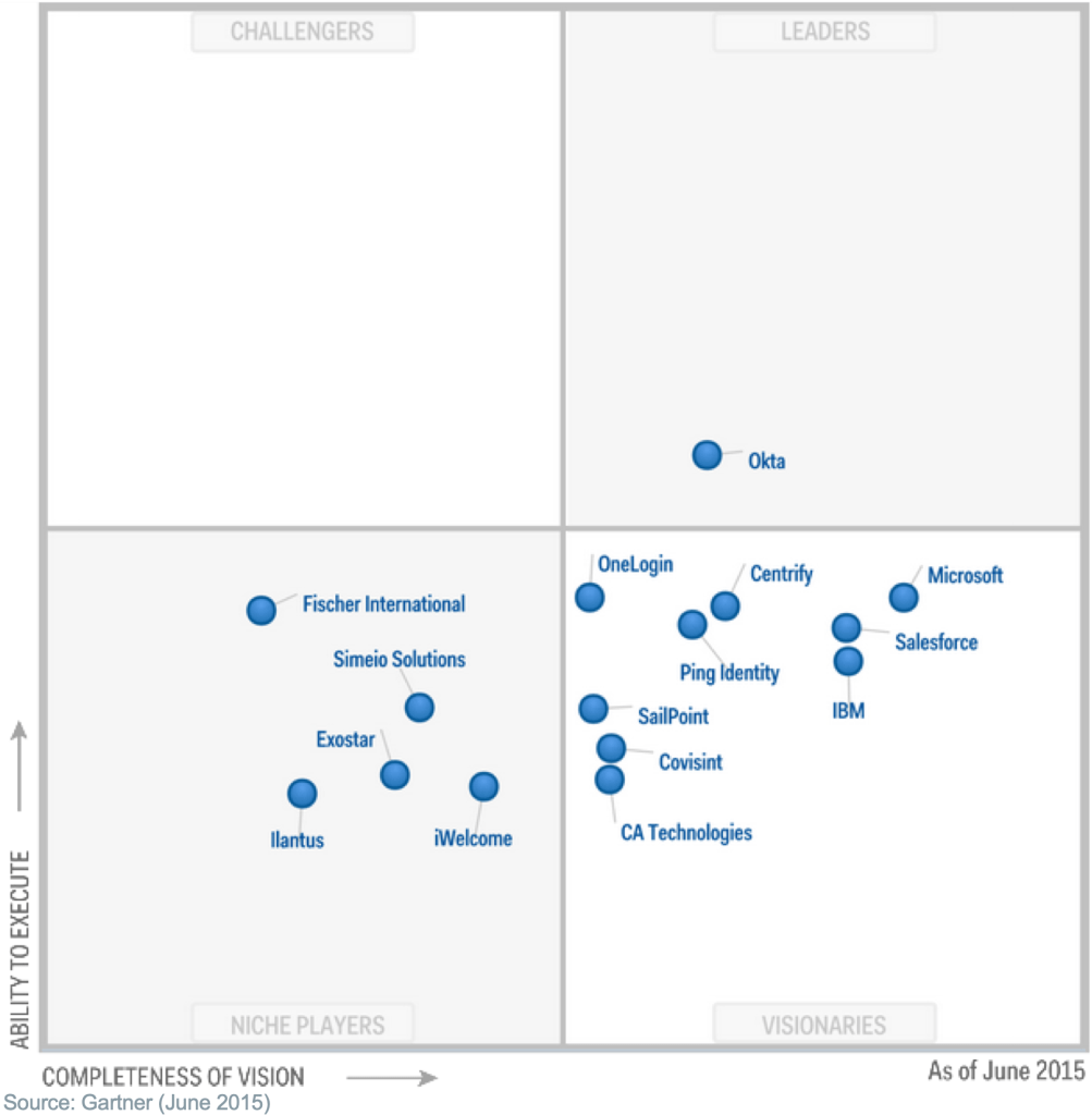 By 2015, after completing its final pre-IPO funding round, Gartner’s Magic Quadrant for IDaaS recognised Okta as the undisputed leader in the category [10]. Traditional players like IBM, Microsoft, Oracle, and CA Technologies were noted as slow entrants into the IDaaS market, significantly lagging behind Okta’s vision and execution.