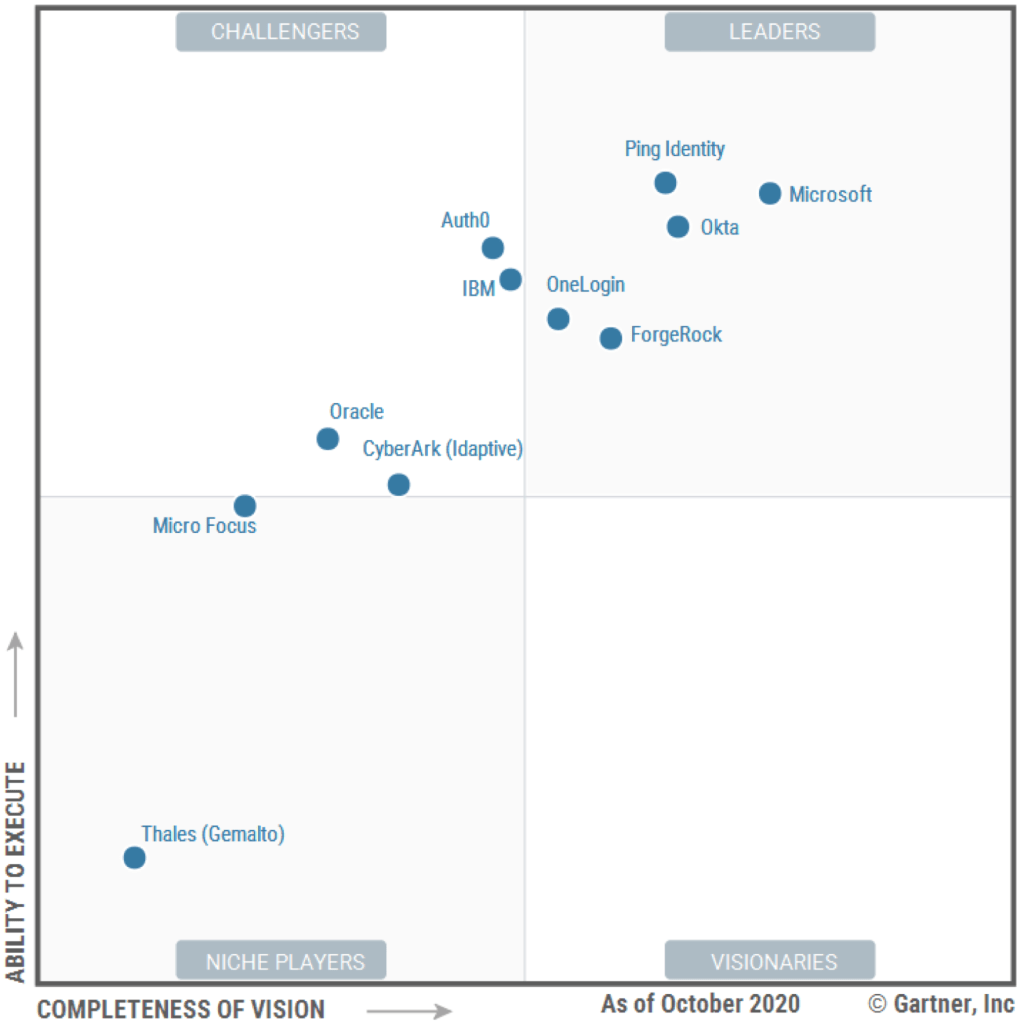 By the end of 2020, just before Okta acquired Auth0, Gartner regarded Auth0 as a serious challenger [10]. While Okta remained a leader, they faced competition from new leaders like Microsoft, Ping Identity, ForgeRock, and OneLogin.